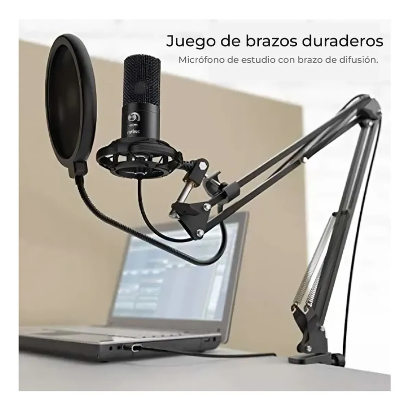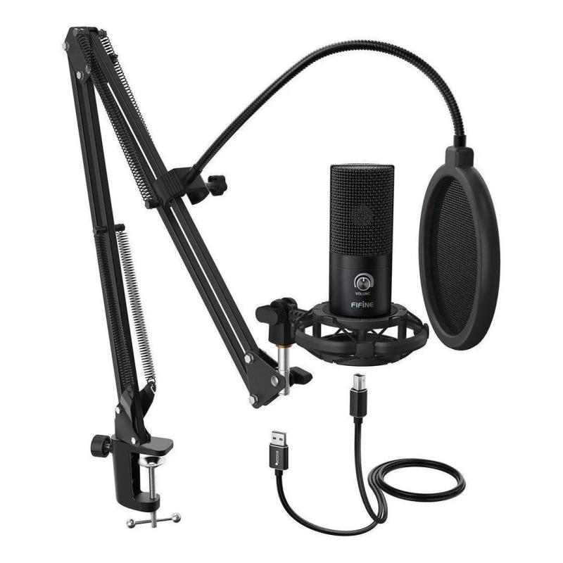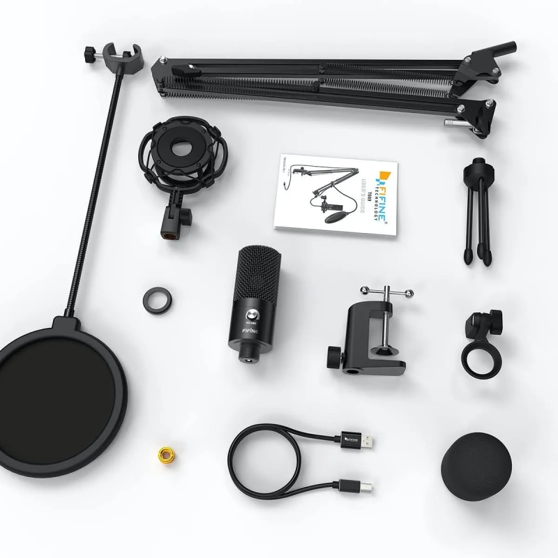 - El cuerpo totalmente metálico con un elegante acabado negro tiene la misma línea de sangre que todos los micrófonos USB de la serie FIFINE.