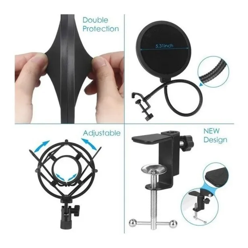 - El filtro pop no está cerca de una mala relación de todo el paquete, las capas duales rechazan bien el ruido p. Y la abrazadera en C fue diseñada cuidadosamente para sostener firmemente todo el kit.